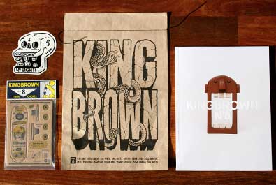 Sitting somewhere between a book, a magazine and an art zine, Kingbrown is a super limited edition periodical. Each issue is handcrafted, delivered inside a silk screened brown bag which is designed and curated by some of the world's leading innovators of photography, illustration and urban and skateboard art and design.